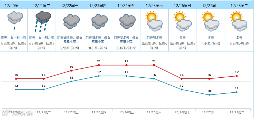 预计我市20-21日受台风“雷伊”减弱后的环流影响,有一次中雨到大雨降水过程,并伴有5到7级阵风,天气湿冷;22-24日以阴天到多云为主,偶有零星小雨;展望25-28日又将有冷空气影响,气温明显下降。