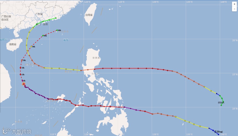 像“雷伊”这种进入南海后北折趋向华南沿海的,确实不多但不是没有,历史上最晚登陆广东的台风是1974年的第27号台风“艾玛”。