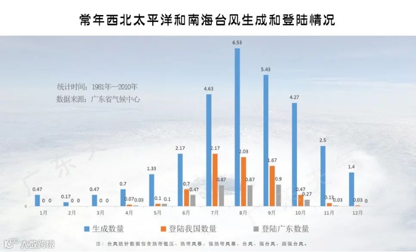 12月我国陆地不少地方虽已进入冬季,但在热带洋面上,气温、海温仍然较高,具备生成台风条件,常年12月,南海和西北太平洋台风平均生成个数为1.4个。