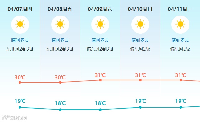 预计我市7-11日天气持续晴朗干燥,昼夜温差大;12日受偏南气流影响,云量增多,多云间晴为主;13日受高空槽影响,多云到阴天,有阵雨或雷阵雨;展望14-16日阴天到多云。天气持续晴朗干燥,请注意森林防火和家居用火用电安全。