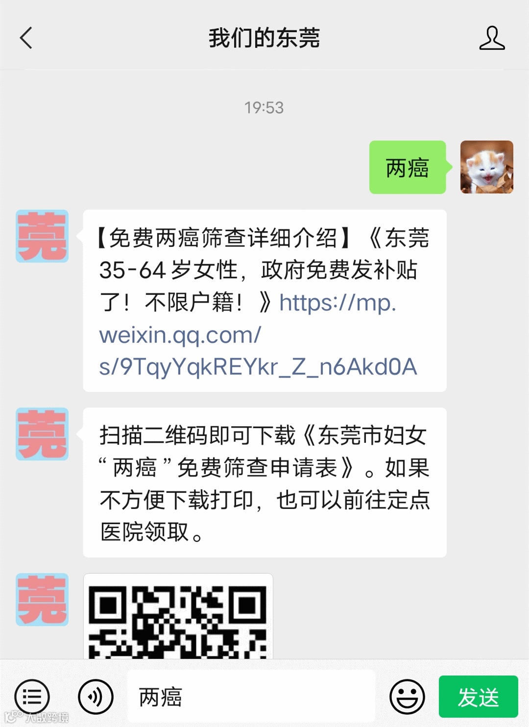 第一步:扫描下面二维码,关注“我们的东莞”公众号,已关注的直接打开即可。