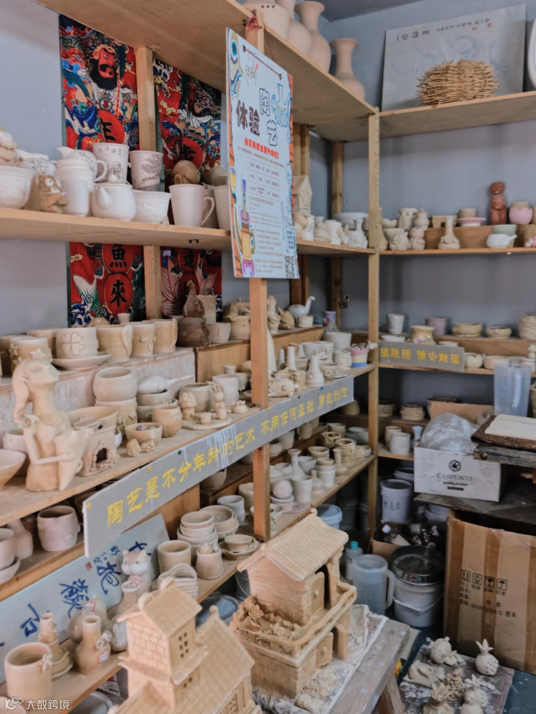 旅游购品:津威乳酸菌饮料、李全和麦芽皮、江南麦芽糖柚皮、非遗新昌鼓、醒狮头、木屐文创品