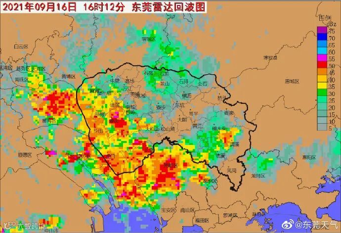 ▲16时12分,东莞雷达回波图