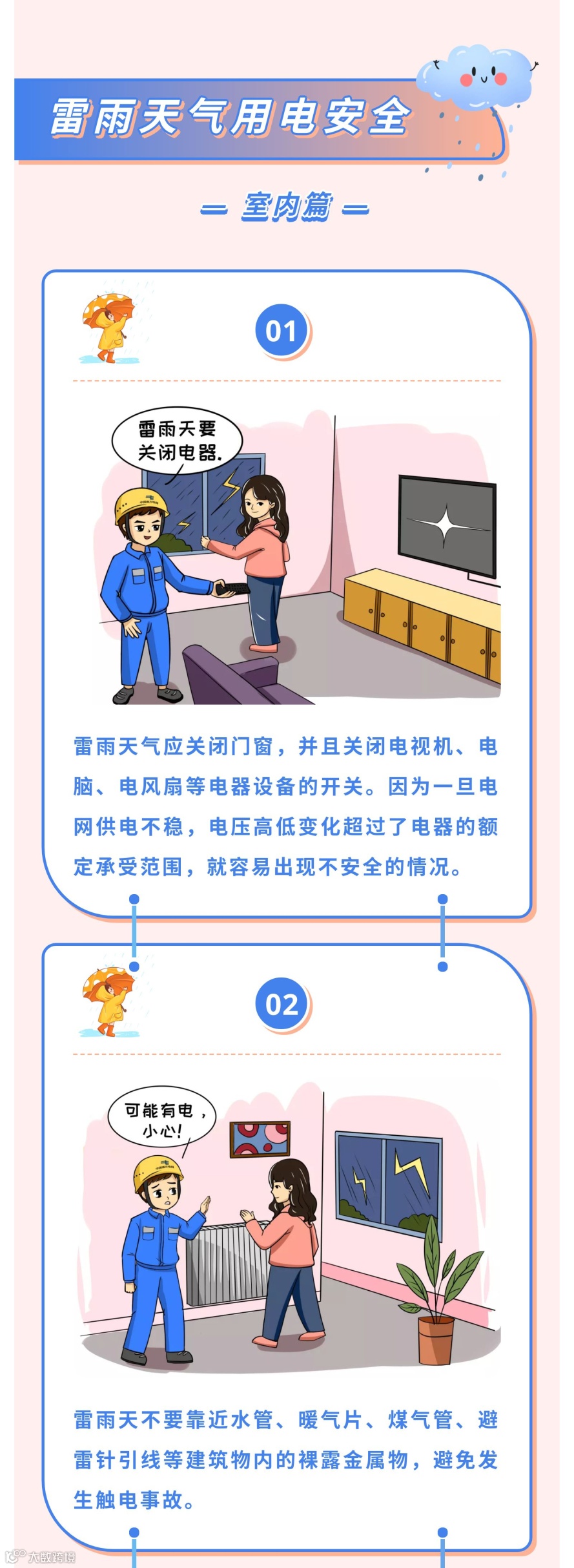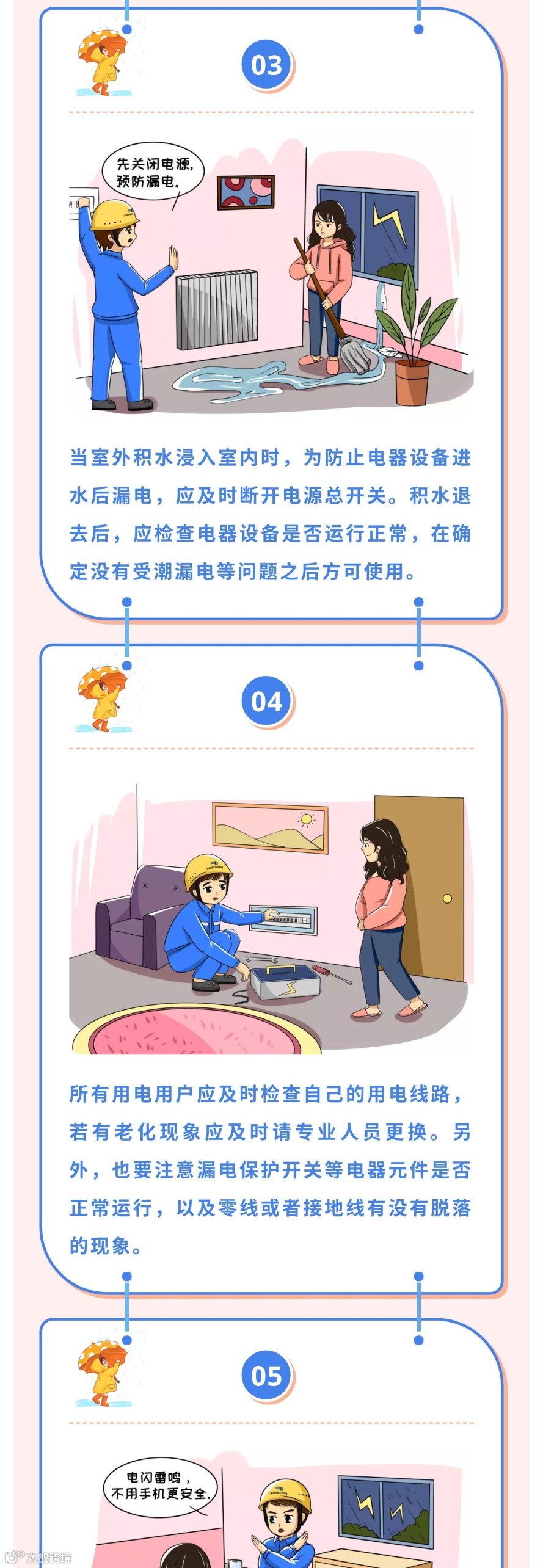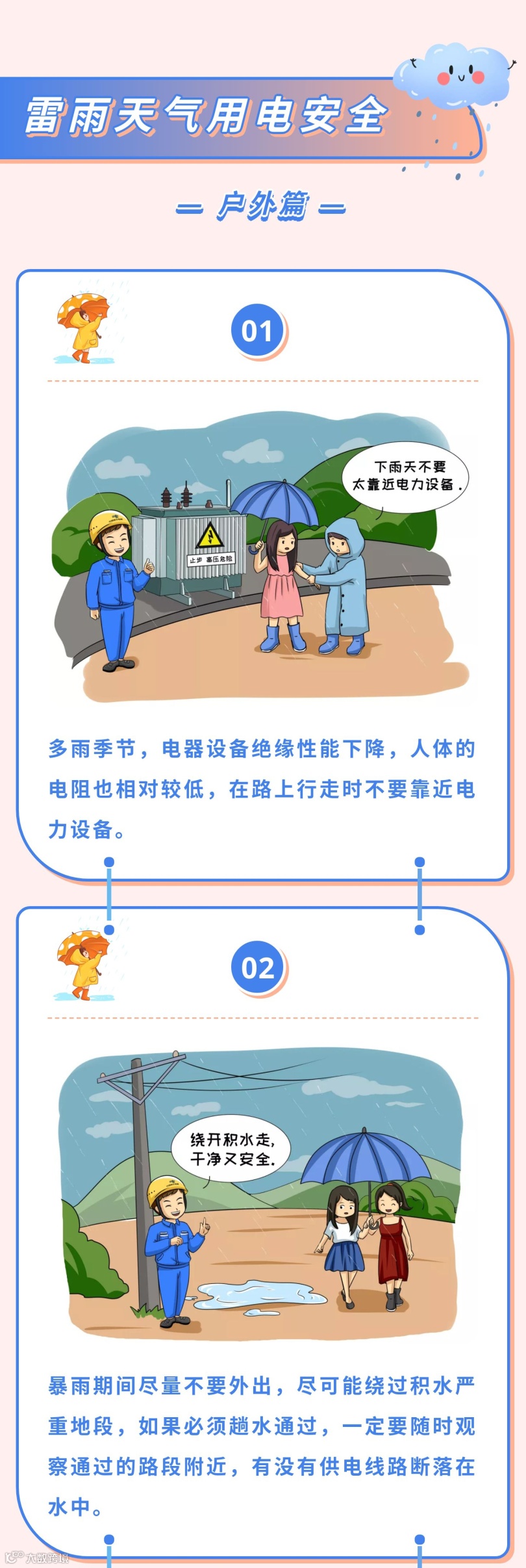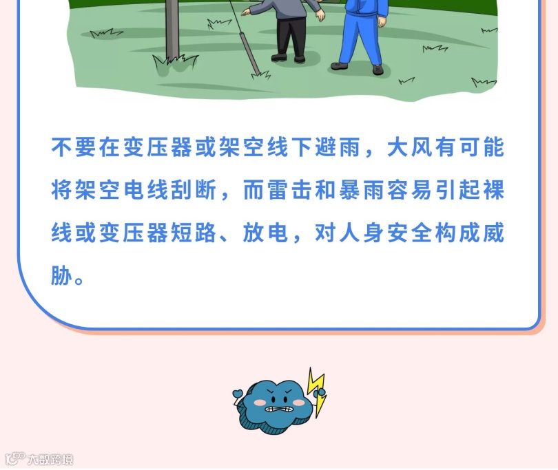 要切记不要趟积水、不要在变压器下避雨