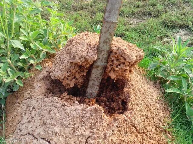 (1)观察蚁巢结构。成熟蚁巢是以土壤堆成高10~30cm、直径30~50cm的蚁丘,内部结构呈蜂窝状,有时为平铺的蜂窝状。新建蚁丘表面土壤颗粒细碎、均匀,随着蚁群中红火蚁数量增加,蚁丘不断增大。