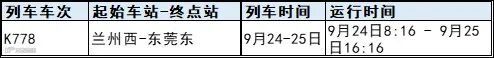 因疫情防控需要,在9月24、25日以下时间段相应区间站曾乘坐过K778次列车的市民朋友,请主动向社区报备并就近进行核酸检测,做好3天2检及自我健康监测,如出现不适请及时就医。