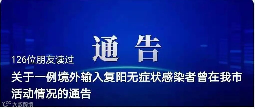2021年1月6日晨,浙江省杭州市报告一例境外输入新冠肺炎复阳无症状感染者,根据浙江省疾控部门流调情况并经我市进一步核实,其2020年12月31日至2021年1月1日期间,曾在我市活动。