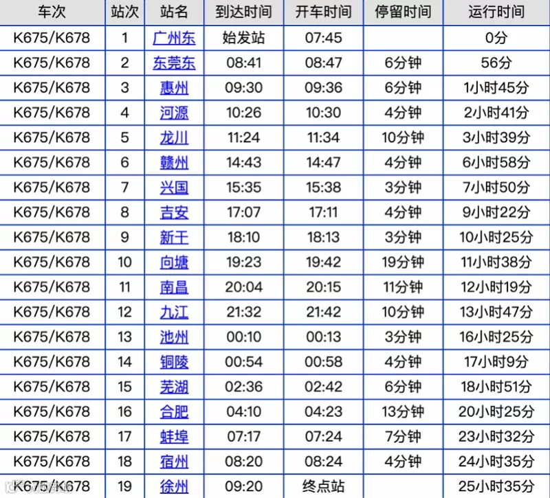 根据该趟火车运行线路图,该班次列车始发站为广州东站,曾于1月24日8:41—8:47在我市常平镇的东莞东站经停。