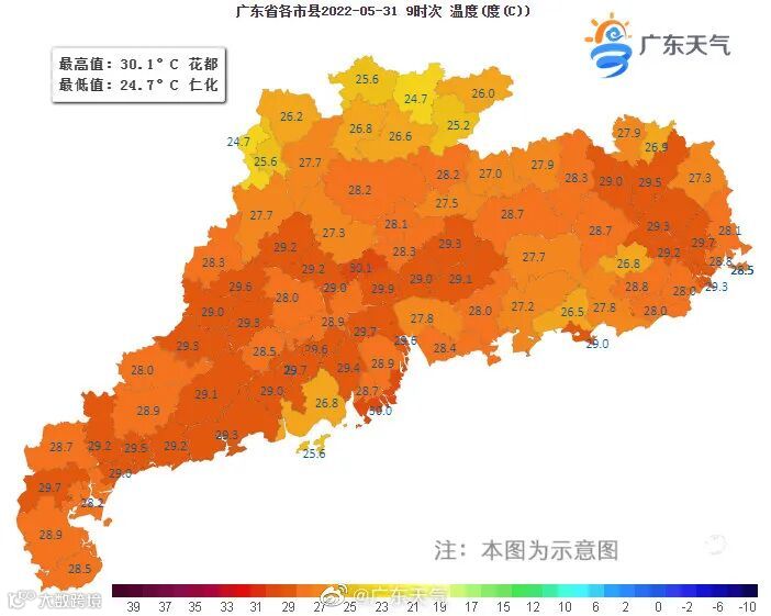 全省最高气温已经突破30℃