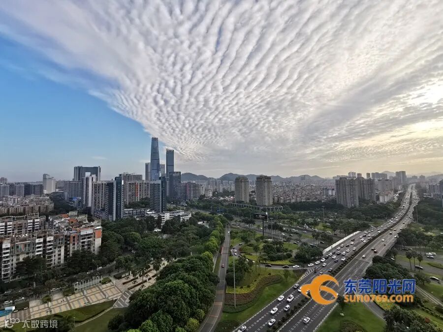 ▲一片“鱼鳞”划过东莞天际