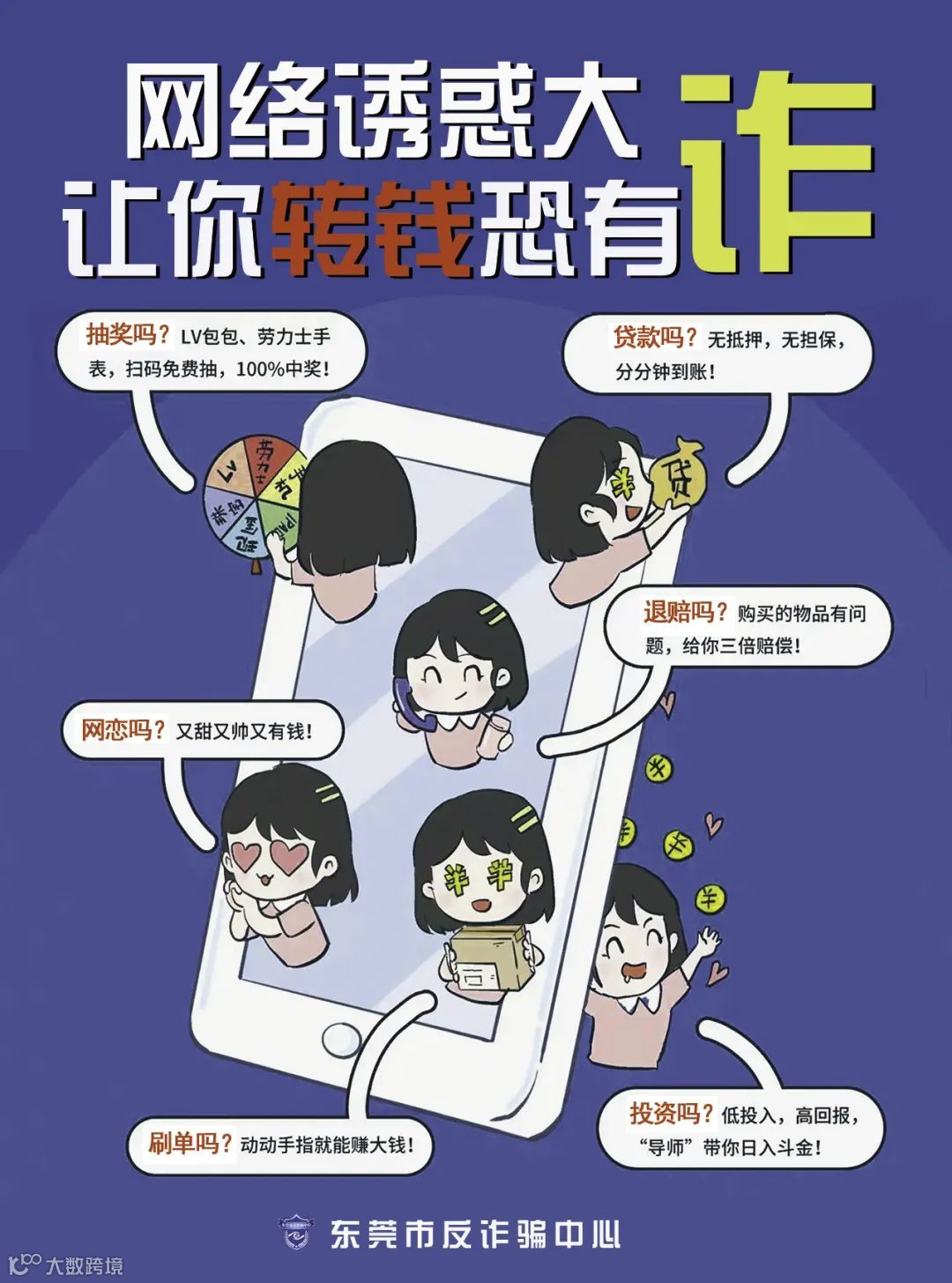 不论诈骗的花样如何翻新,目的都只有一个,让你转账汇款,遇此情况务必做到:不轻信、不转账、不汇款,并立即拨打110报警,以防受骗上当。