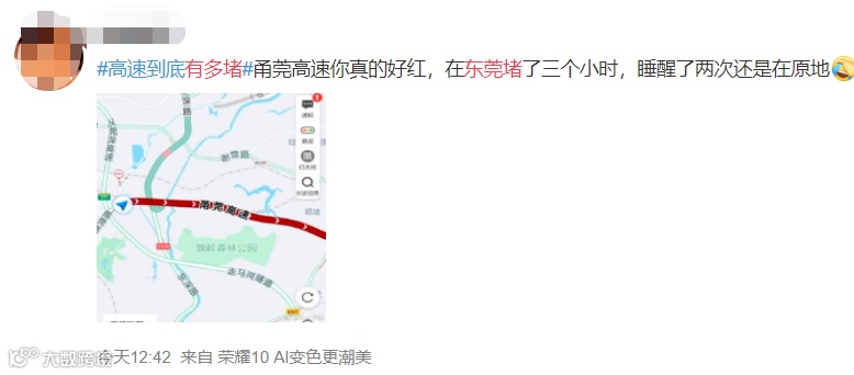 1. 受潮莞高速车流量大影响,往博罗方向银瓶山隧道至沥林西路段,车辆缓慢通行1公里,路政已在往博罗方向K981+100实行间歇性管制措施;