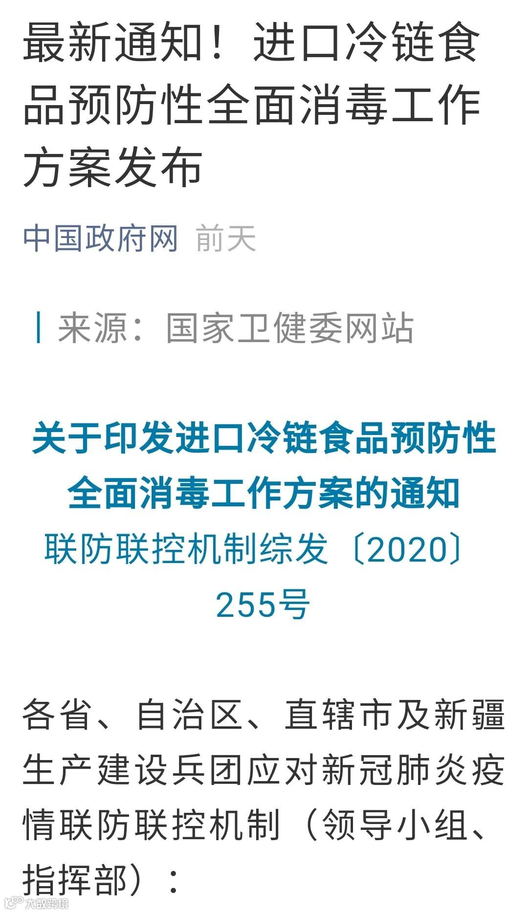 面对日益严峻的跨境货物带毒的风险,近日,国务院应对新型冠状病毒肺炎疫情联防联控机制综合组发布了《关于印发进口冷链食品预防性全面消毒工作方案的通知》。