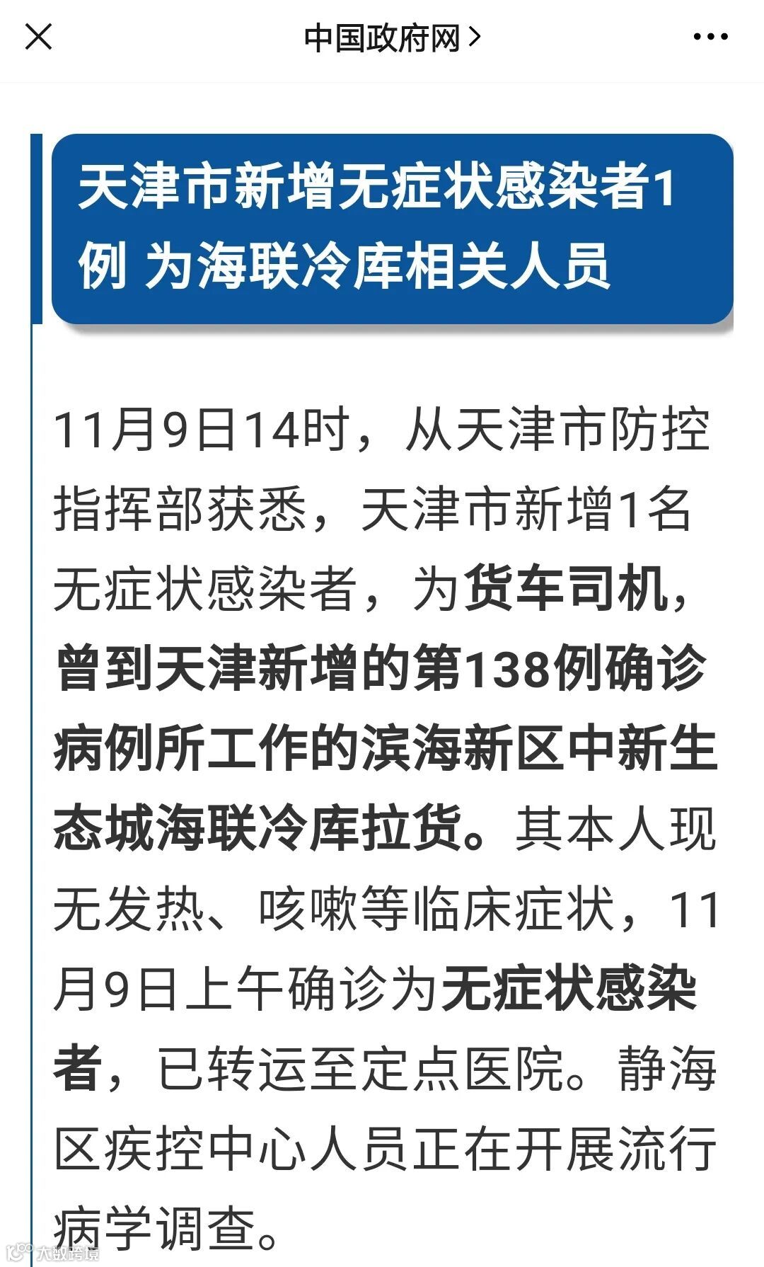 1天之内新增3个中风险地区,且天津出现的病例再次与冷链食品相联系。