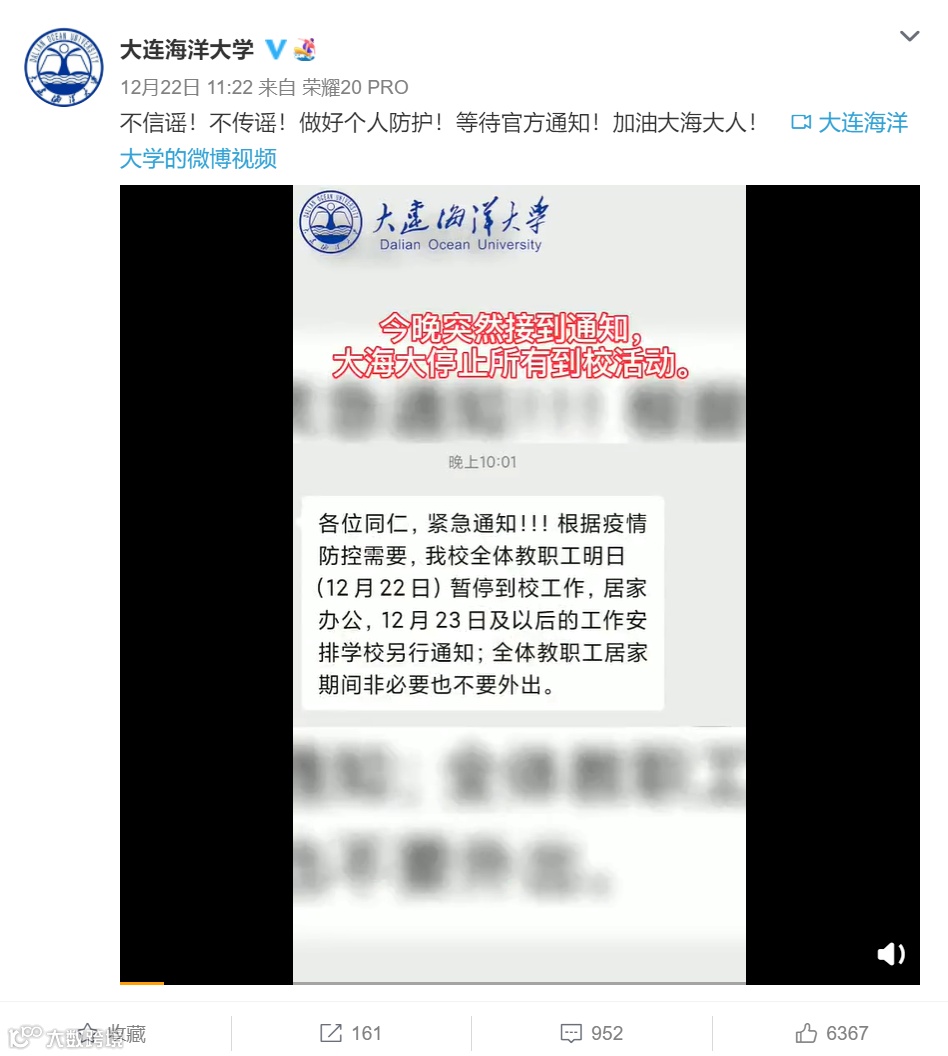 此前报道:大连海洋大学封闭校园