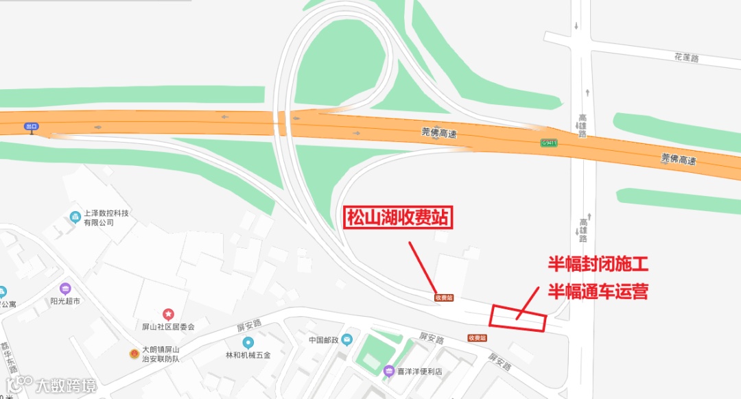 虎岗高速松山湖收费站的出入口匝道及收费广场水泥路面将于2020年9月22日至29日期间开展维修改造施工,届时各匝道将分时段实施全封闭施工。