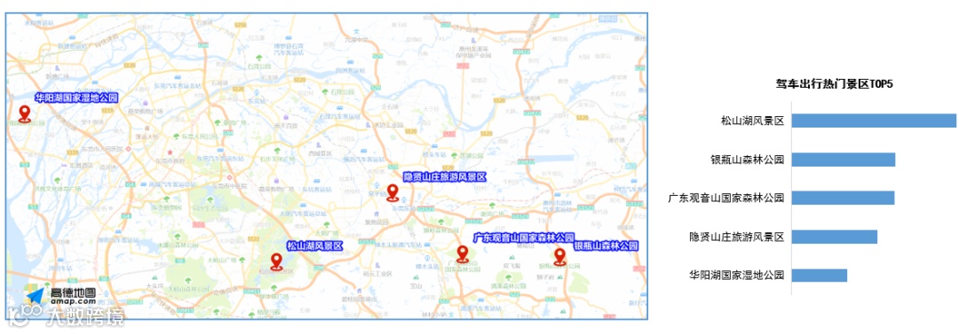 预计节日期间松山湖风景区最受欢迎,其次是银瓶山森林公园、广东观音山国家森林公园、隐贤山庄旅游风景区、华阳湖国家湿地公园。