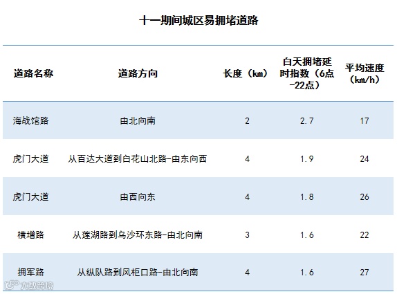 🔺【十一期间城区易拥堵道路】