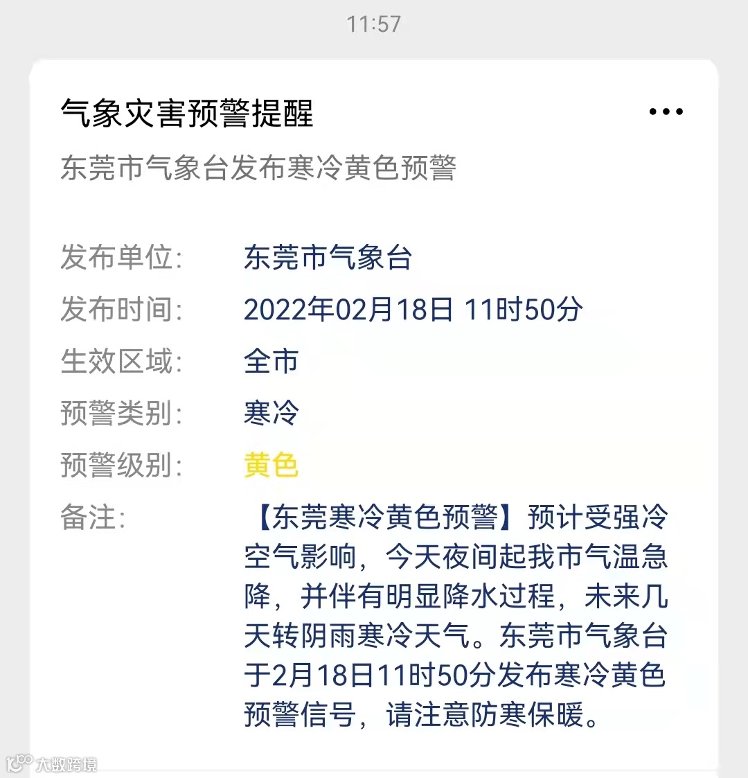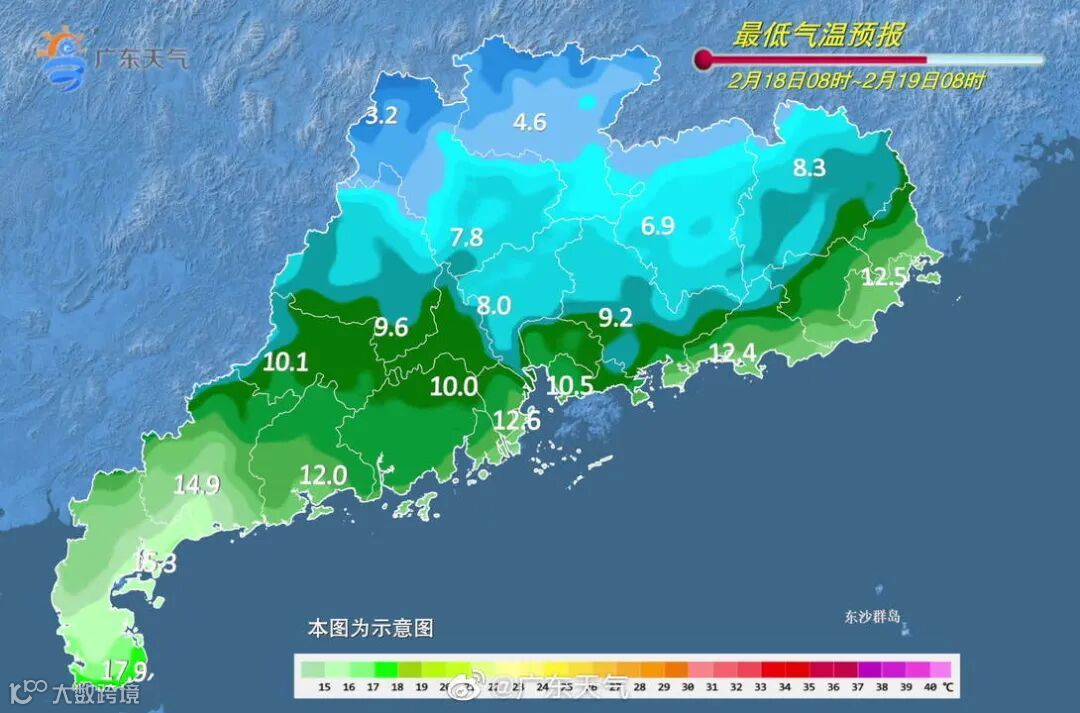根据广东省气象台2月17日的预报结论,受强冷空气和降雨影响,预计未来一周广东持续阴雨寒冷。为提醒公众注意气温下降,广东省应急和气象部门已发出预警。