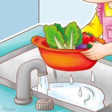 果蔬的正确“洗澡方式”。放在流动水下用手搓洗,或使用果蔬洗涤剂进行清洗。有些水果可以用开水烫一下后剥皮吃,蔬菜不要凉拌生食。