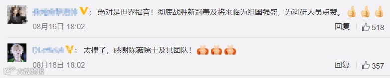 8月16日晚,一则关于新冠疫苗的好消息在网上刷屏!