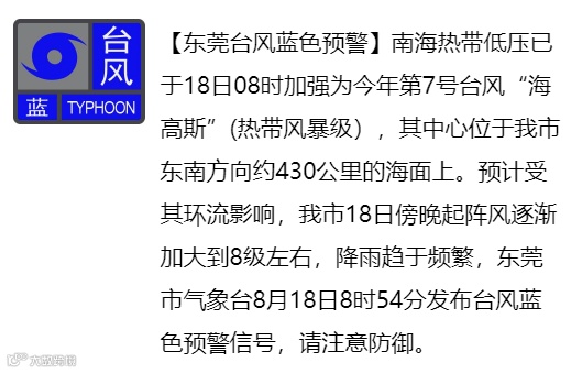 加强为今年第7号台风“海高斯”(热带风暴级)