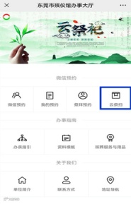 倡导采用网络祭扫、线上方式缅怀先人,寄托哀思。市民朋友,可在“东莞市殡仪馆”微信公众号进行 “云祭扫”或搜索“粤省事”小程序,下拉点击“身后事服务-云祭扫服务”。实现足不出户缅怀先人、寄托思念。