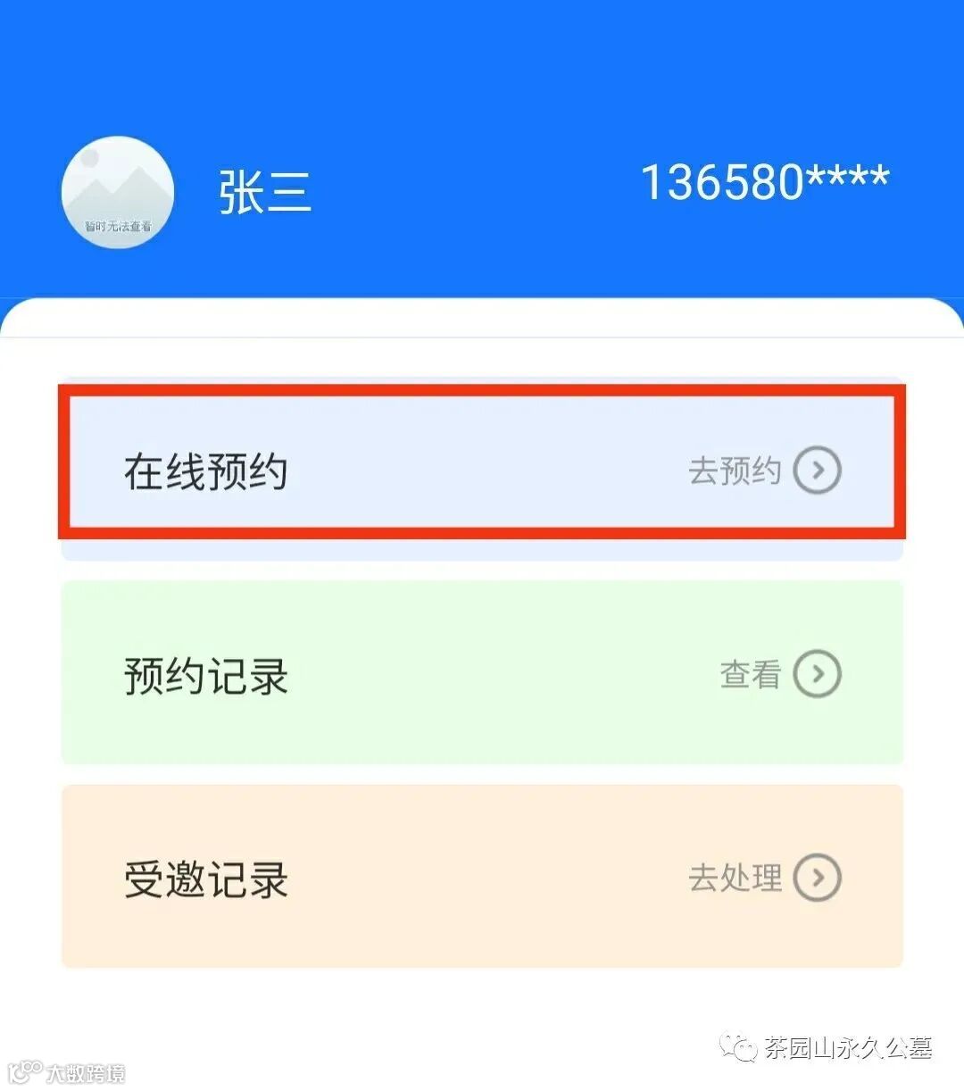 (一)预约方式。通过“茶园山永久公墓”公众号进行实名预约,市民可分别选择车辆预约或者步行预约。