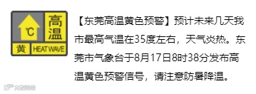 【东莞高温黄色预警】