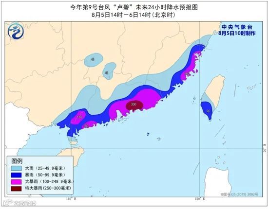 中央气象台预计,未来三天,“卢碧”所带来的风雨影响将持续,预计江南东部和南部、华南中东部有大到暴雨,其中广东大部大暴雨,局地特大暴雨。