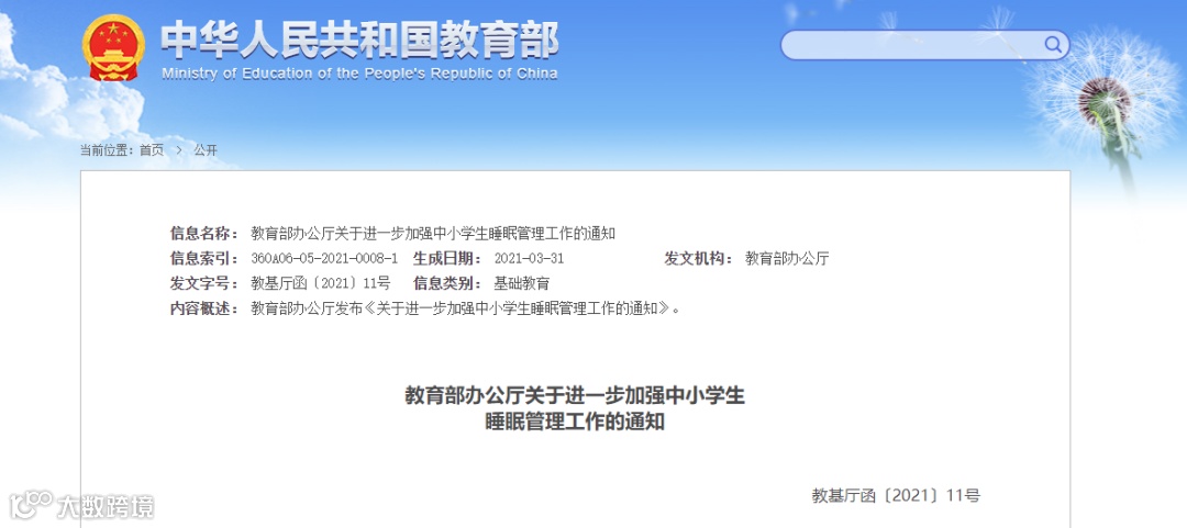 针对外在因素影响学生睡眠问题,教育部印发《关于进一步加强中小学生睡眠管理工作的通知》: