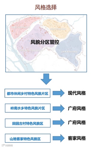 其中,风格篇分为现代、广府、客家三种风格,其中每种风格包括四种表达形式,共形成12种建筑风格样式。
