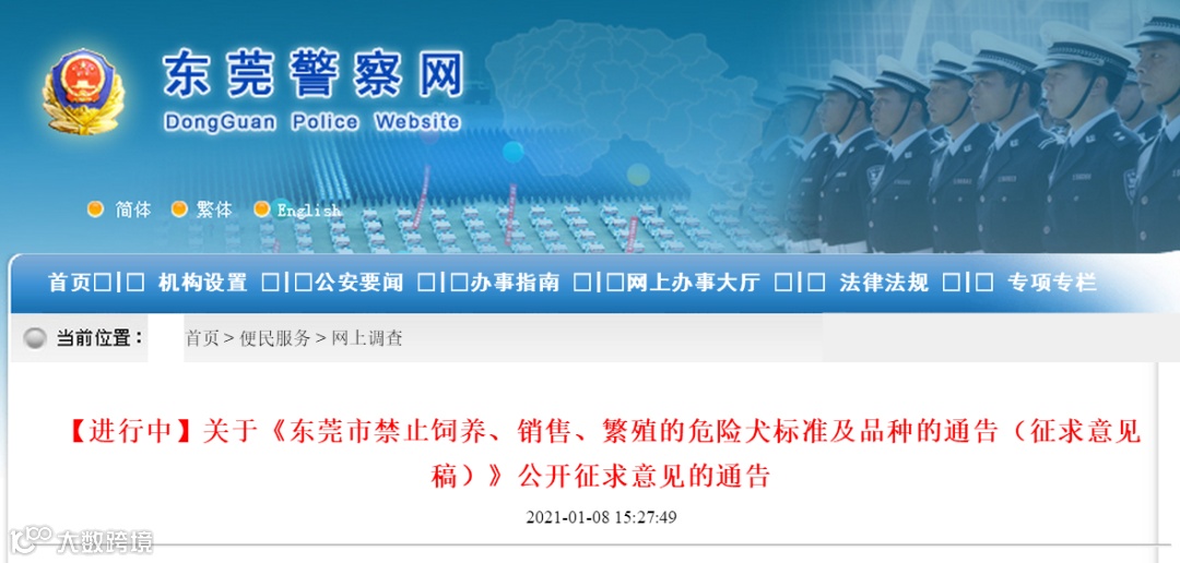 关于《东莞市禁止饲养、销售、繁殖的危险犬标准及品种的通告(征求意见稿)》公开征求意见的通告