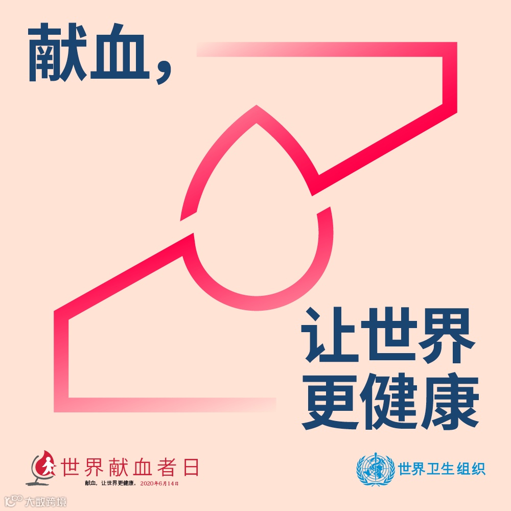 每一个你的参与和支持,都将帮助扩大2020年世界献血者日宣传活动的影响,提高全世界对献血的认识——献血是体现团结互助精神、并挽救生命的行为,提供安全血液和血液制品服务对每个医疗保健体系都至关重要。我们欢迎各方积极参与,共同推广2020年世界献血者日。