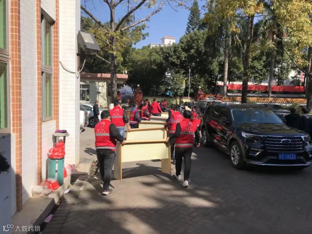 蓝马甲的妇联工作人员
