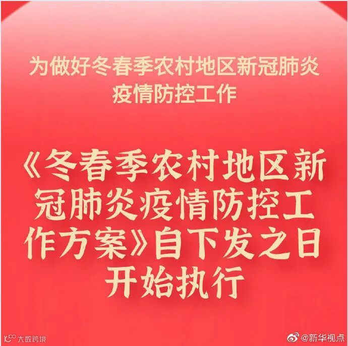 为做好冬春季农村地区新冠肺炎疫情防控工作,《方案》自下发之日开始执行。