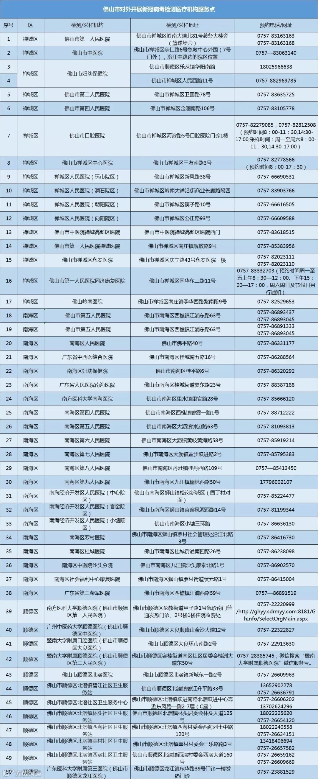 截至1月22日,佛山全市共有98家新冠病毒检测医疗机构服务点,团体或个人进行核酸检测,可提前预约,带上身份证即可前往检测。