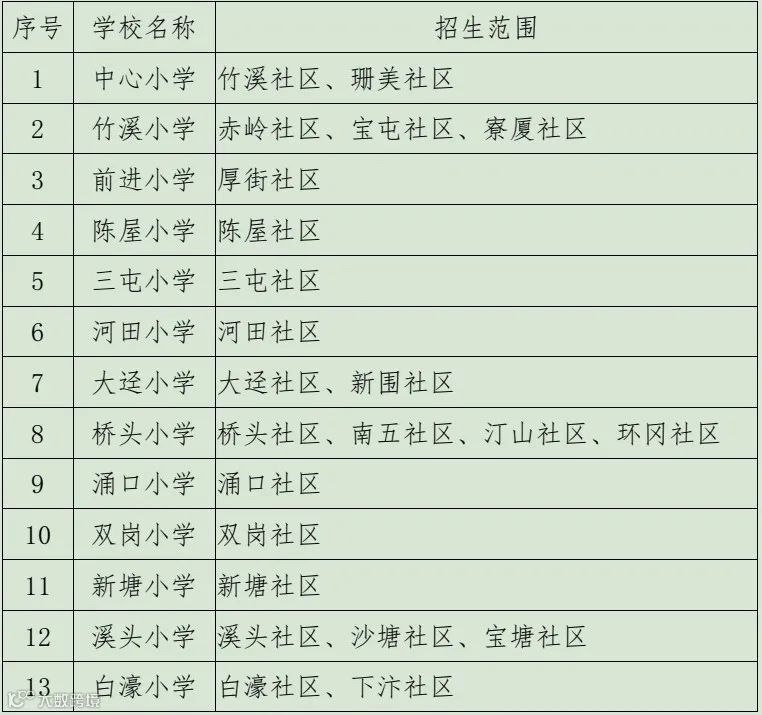 中心小学、竹溪小学、前进小学、三屯小学、陈屋小学、艺园学校、新园学校、军埔小学、福民学校、道明外国语学校、卓恩小学等11所小学的厚街户籍应届毕业生。