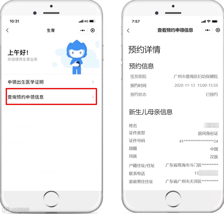 选择预约机构领取的,也可从“生育”服务页面进入查询预约申领信息。