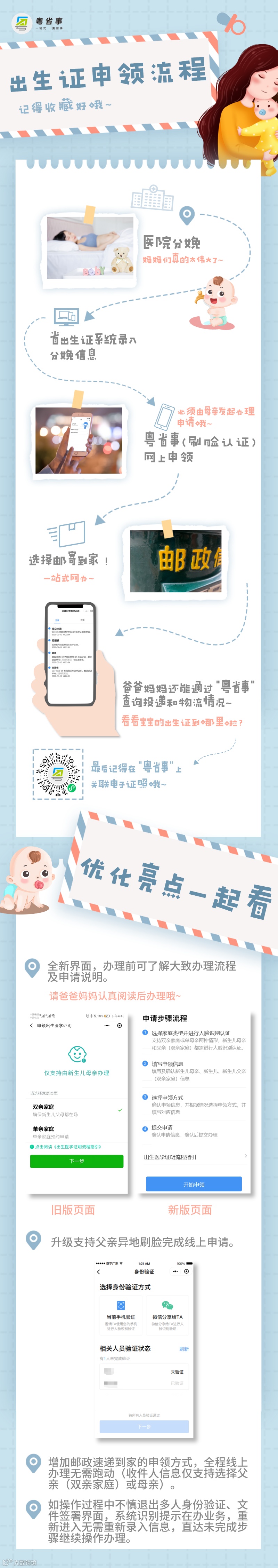 2018年5月1日后签发的出生证可同时生成电子证照,可通过“粤省事”小程序关联查看。