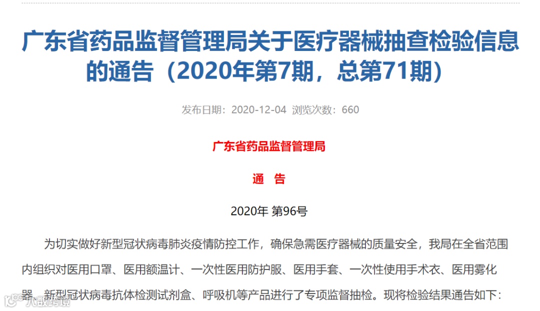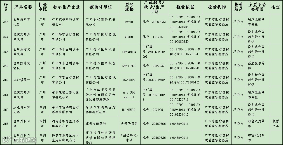 据了解,本次专项抽检共抽检样品283批,涉及广东省155家生产企业(进口总代理单位)、51家经营企业、33家医疗机构以及36家省外生产企业(进口总代理单位)。依据医疗器械现行的国家、行业标准和注册产品标准/产品技术要求,对所抽样品进行了检验。