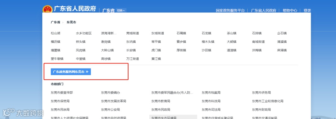 1.登陆广东政务网,点击右上角切换到东莞市