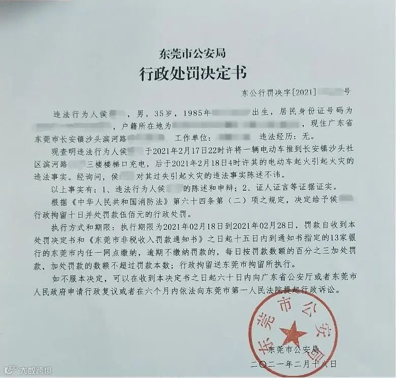 ▲2月17日22时许,候某某将电动自行车放置在3楼楼梯过道充电