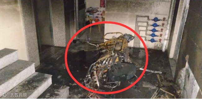 ▲2月18日凌晨4时许,充电中的电动自行车突然起火
