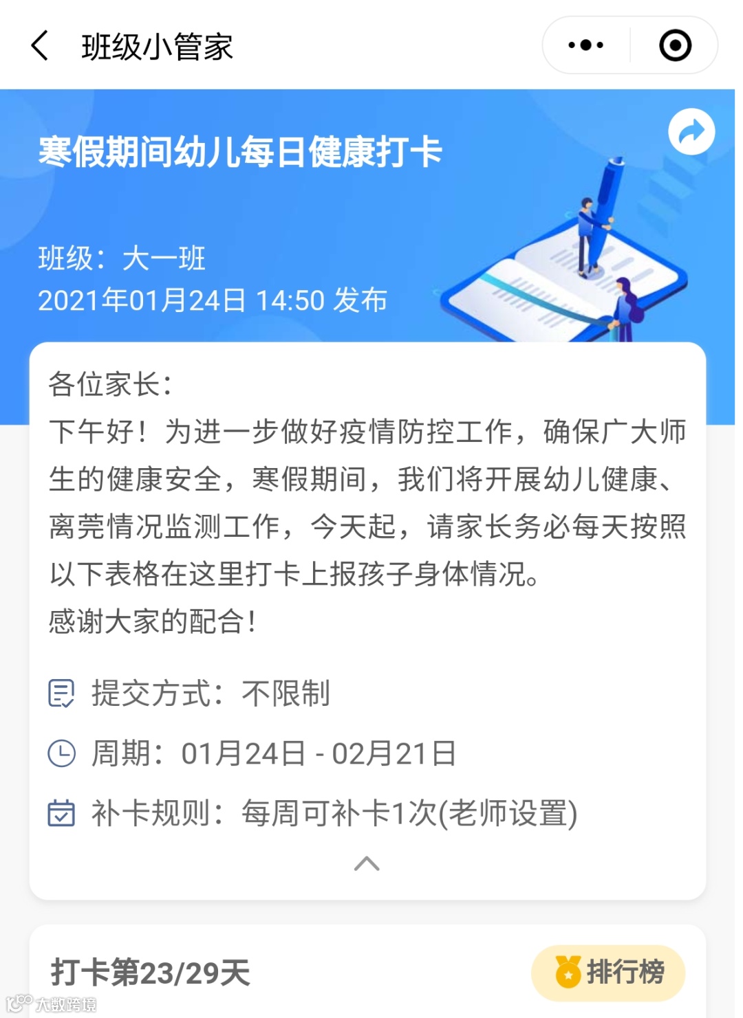 还有许多学校利用问卷星、打卡小程序等认真做好开学前的师生员工登记工作: