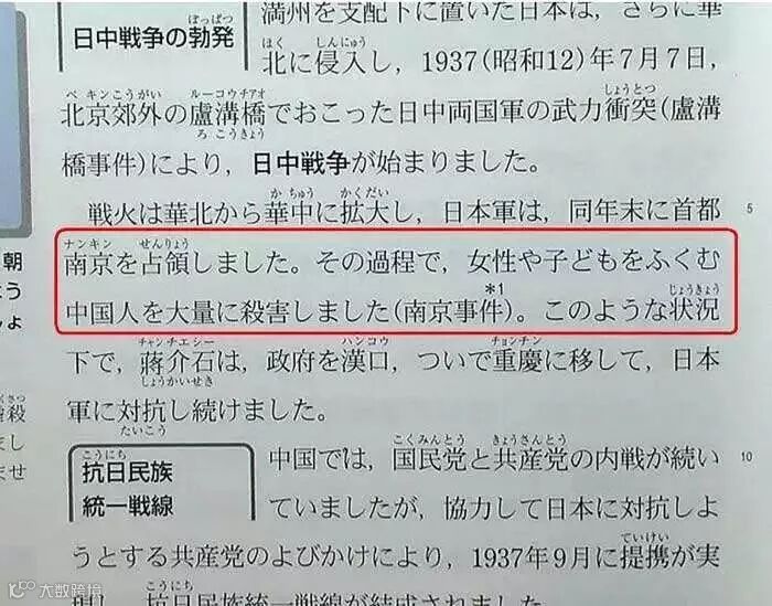 日方在一些历史教科书和媒体报道中
