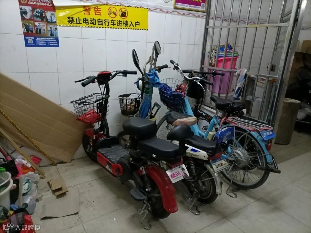 此外,执法人员在三屯社区夜查时,发现在两所出租屋内竟然停放了电动车,其中一所是二手房东在屋内停放自己的电动车,另一所则是二手房东管理不到位,允许租户在出租屋内停放,现场看到,在该出租屋入门左手边,停放了4辆电动车。