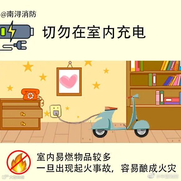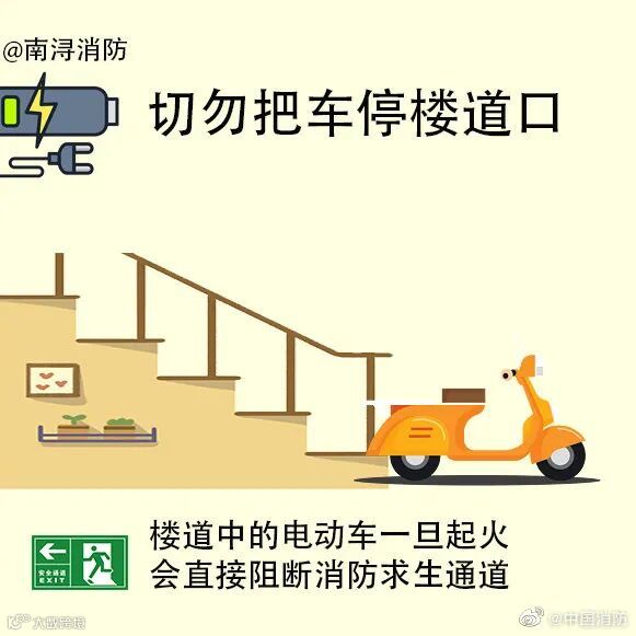 切勿在建筑首层、楼梯间、安全出口等停放、充电