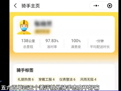 于是就在评价时给了骑手一个“差评”