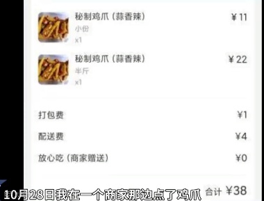 她在网上订了一份凉拌鸡爪的外卖
